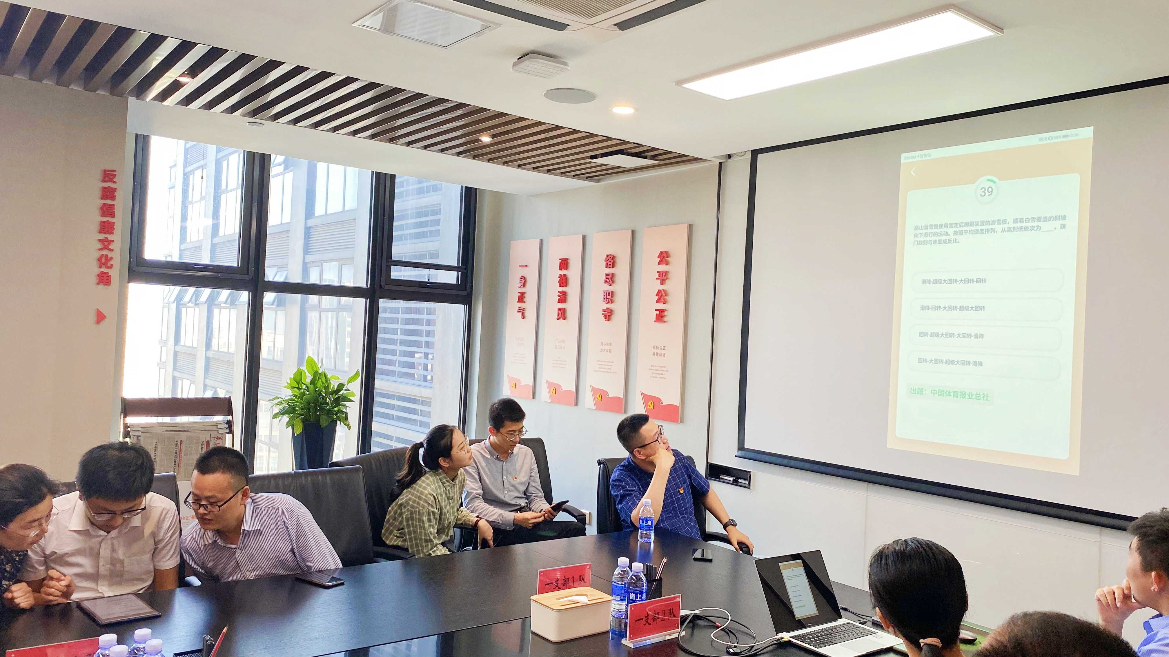 競(jìng)賽共分為團(tuán)隊(duì)競(jìng)答、挑戰(zhàn)答題、黨史知識(shí)“你畫(huà)我猜”三個(gè)環(huán)節(jié),集團(tuán)三個(gè)黨支部各派出兩支隊(duì)伍參賽。各隊(duì)選手認(rèn)真作答、全情投入,現(xiàn)場(chǎng)氛圍十分活躍。