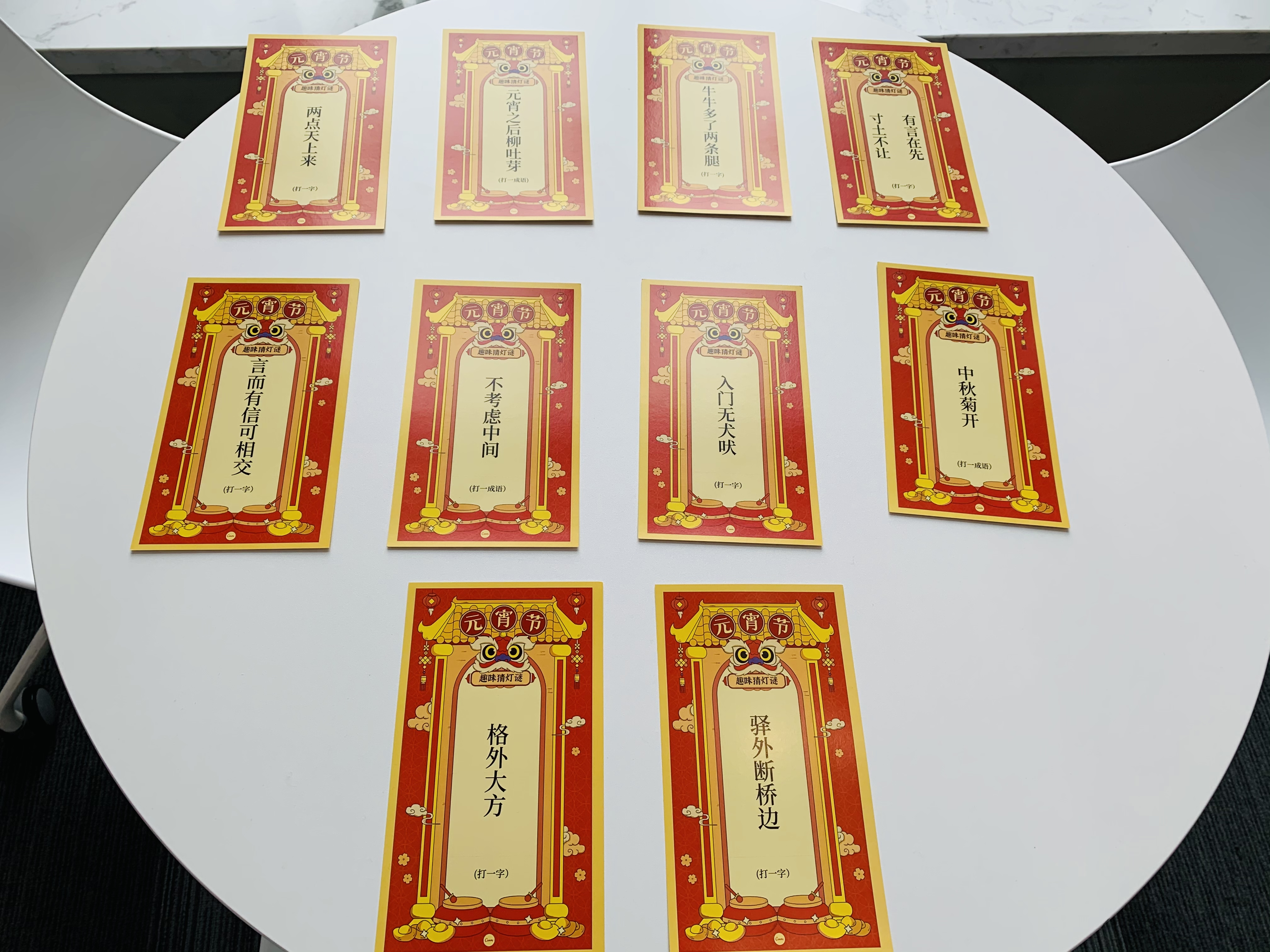 活動的第二階段是猜燈謎,活動現場一個個紅色的燈籠懸掛在圖書室四周,一張張燈謎卡片遍布整個圖書室的桌上,謎面、謎底的種類繁多,涵蓋了字、成語、人名、地理、民俗、動物、日常用品等,內容豐富,趣味盎然,既具娛樂性,又具知識性。職工們有的凝神思考、有的結伴商量,討論謎底,現場氣氛熱烈、熱鬧溫馨。為增強趣味性,猜燈謎活動設置“兌獎券”。答對燈謎的職工可獲得“兌獎券”,活動結束后可憑券兌換精美禮品。