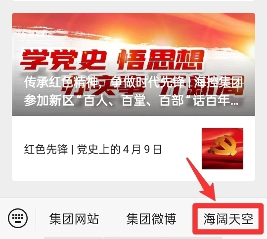 3.通過海控集團微信公眾號,點擊右下方“海闊天空”進入。